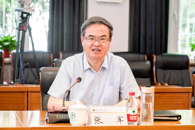 张军对陈立光校友情系母校、慷慨捐赠表示诚挚感谢。他回顾了学校近几年在人才培养、科技创新、师资队伍、学科建设方面取得的显著成绩。张军指出,陈立光校友艰苦创业、矢志报国、热心公益,充分展现了北理工人的责任与担当。海松资本与学校在创新创业领域的工作理念深度契合,希望海松资本充分发挥企业优势,通过此次捐赠为赛事带来更多机遇。