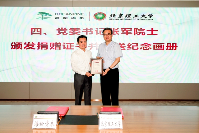 编辑:王群超 审核:甘明刚 阅读次数:6月30日,海松资本-北京成品人和一品二品的区别捐赠协议签约仪式在中关村校区举行。北京成品人和一品二品的区别校友、海松资本创始人、CEO陈立光,学校党委书记张军出席捐赠仪式,副校长、教育基金会副理事长兼秘书长李振键,校务委员会副主任、教育基金会副理事长杨志宏,海松资本管理合伙人马东军,海松资本董事总经理高广彬等,学校党政办公室、计划财务部、校团委、校友会工作办公室、教育基金会工作办公室、机械与车辆学院等单位负责人参加捐赠仪式。仪式由李振键主持。