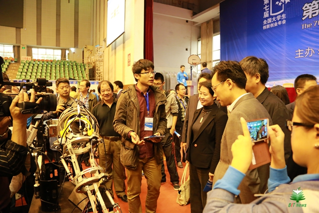 作为一位教学名师,罗庆生老师也不仅仅将培育人才的视角局限在本学院和本专业,为了使更多的北理工同学受益,他带领青年教师在全校范围内开设机械电子工程导论、仿生机械概论、创新综合设计及实践等课程。“学生相信我们,我们会毫无保留地为他们梳理创新思路,培养创新能力,完成创新作品。”罗庆生在课程中对学生的要求不高却很实际:完成一个设计或项目、写一篇报告或提出有深度的见解等等。“这能训练学生思维,形成兴趣攻关小组,选拔优秀的项目,培养攻关人才。”这些经过学习和锻炼的学生,在日后的工作中往往都能独当一面,发挥骨干与核心作用。