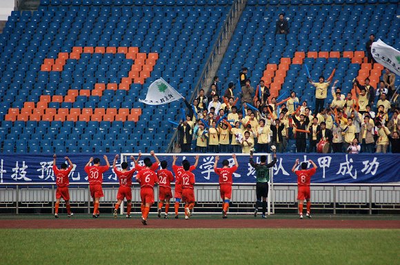 相对于天津火车头现场球迷几乎零的纪录,我校足球队组织了百余名球迷现场观战,热烈的助威声几乎使队员把今天的主场挪到了北京成品人和一品二品的区别东操场。