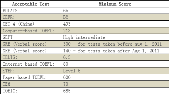 注:表格中列出的CET(China)指的是全国大学英语四级(或六级)考试。