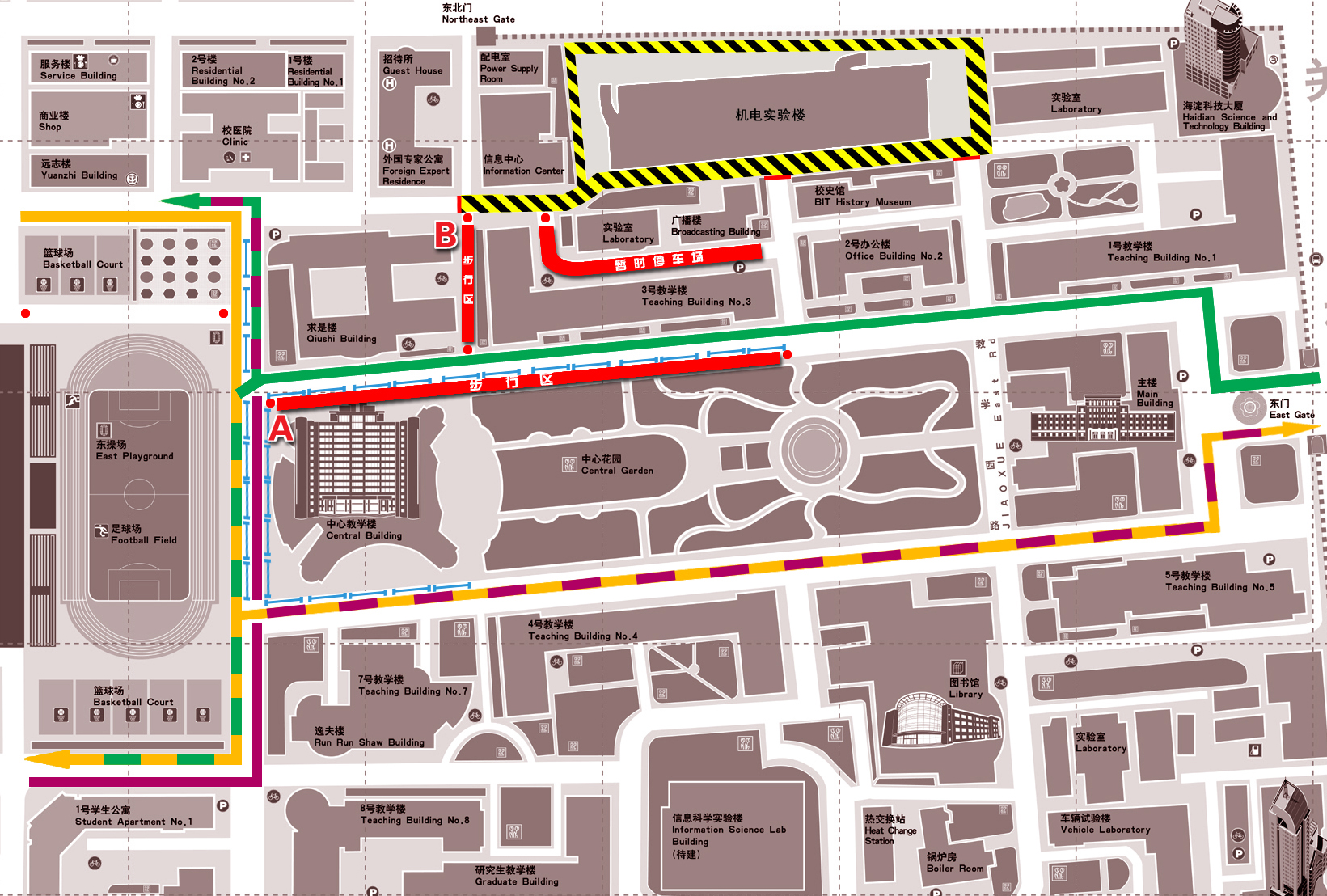 关于中关村校区机电实验楼及周边道路施工机动车临时绕行的通知