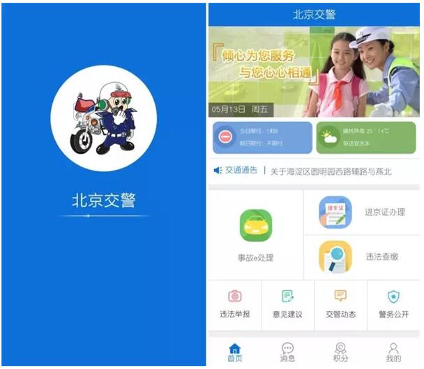 5月26日,北京交管部门推出的“北京交警”APP上线试运行。今后,市民群众可通过“北京交警”APP实现事故e处理、进京证办理等交管业务办理及信息服务。