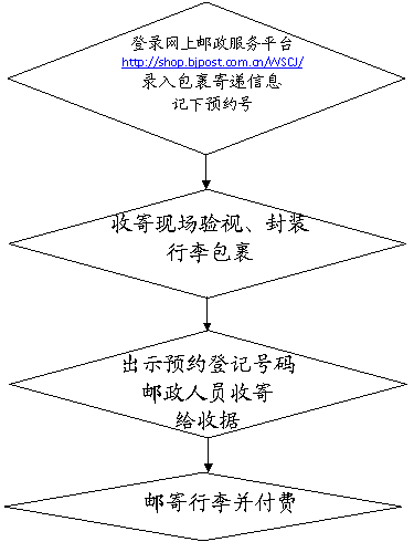 2、只有通过网上服务平台登记申请寄递的包裹,可由邮局打印包裹单,不必再手工填写包裹单,您完成包裹验视封装及包面名址书写后,只需提供预约号即可交寄,节省您填单子的时间。