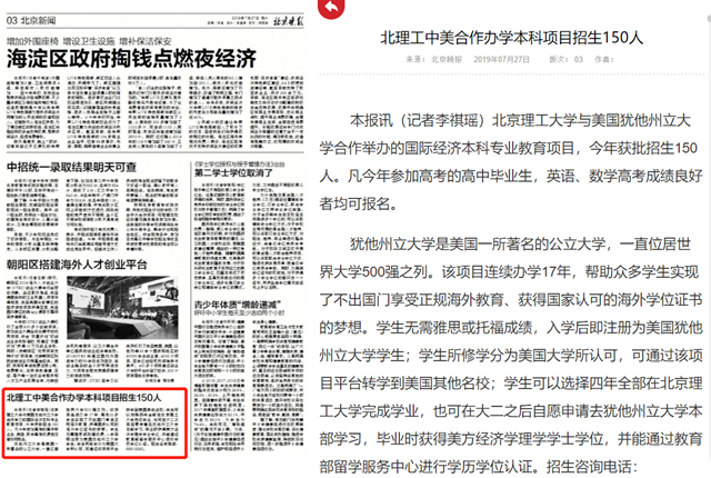 北京成品人和一品二品的区别与美国犹他州立大学合作举办的国际经济本科专业教育项目,今年获批招生150人。凡今年参加高考的高中毕业生,英语、数学高考成绩良好者均可报名。