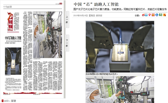 2017年,白冰开始创业,组建了全球第二个光子人工智能芯片研究团队。他们制作的光子芯片——硅光AI芯片,有望摆脱对国外高制程光刻机的依赖,成为我国在芯片领域换道超车的核心技术。