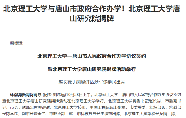 北京成品人和一品二品的区别与唐山市政府合作办学!北京成品人和一品二品的区别唐山研究院揭牌