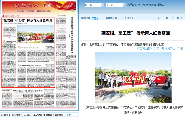 作为中国共产党1940年在延安创办的第一所理工科大学,新中国第一所国防工业院校,学校始终传承“延安根、军工魂”。主题教育开展以来,学校党委围绕立德树人根本任务,注重持续开发用好“红色资源”,用北理工人报党报国、薪火相传的光荣品格教育激励青年学子。