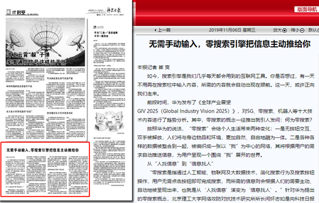 同时,闫怀志强调“零搜索并非是平地起高楼”,从输入关键字完成搜索,到精准定向的智能推荐,搜索技术经历了一个较长的发展过程。“当前,人工智能、大数据、物联网等领域的发展,在搜索需求感知、搜索算法、搜索算力等方面,都为零搜索的实现提供了很好的技术支撑。”他说。