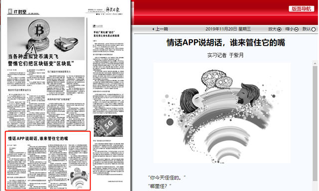 编辑:吴楠 审核:王征 阅读次数:原文标题:情话APP说胡话,谁来管住它的嘴