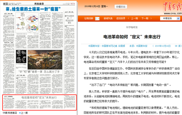 “和现有的锂离子电池相比,锂硫电池的能量密度可以做得更高。”陈人杰称,目前他所在的研究团队正在开发高性能电池体系,利用新的材料,提升电池的能量密度、循环性能、功率特性和安全性等。