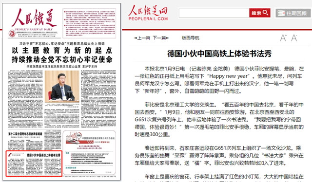 编辑:吴楠 审核:王征 阅读次数:原文标题:德国小伙中国高铁上体验书法秀
