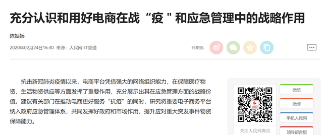 编辑:吴楠 审核:刘晓俏 阅读次数:原文标题:充分认识和用好电商在战“疫"和应急管理中的战略作用