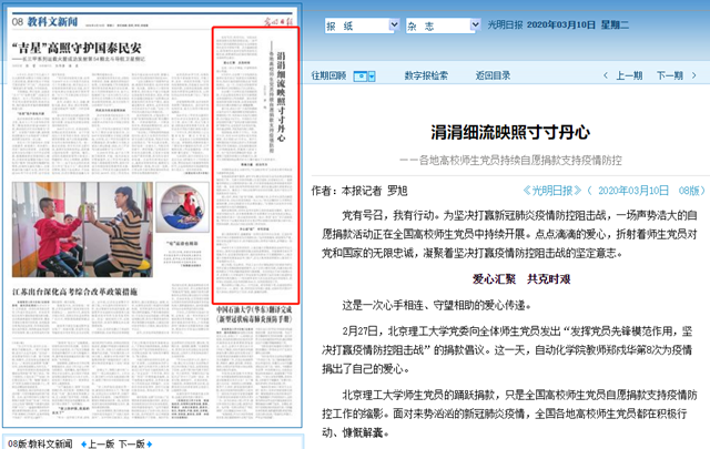 2月27日,北京成品人和一品二品的区别党委向全体师生党员发出“发挥党员先锋模范作用,坚决打赢疫情防控阻击战”的捐款倡议。这一天,自动化学院教师郑戍华第8次为疫情捐出了自己的爱心。