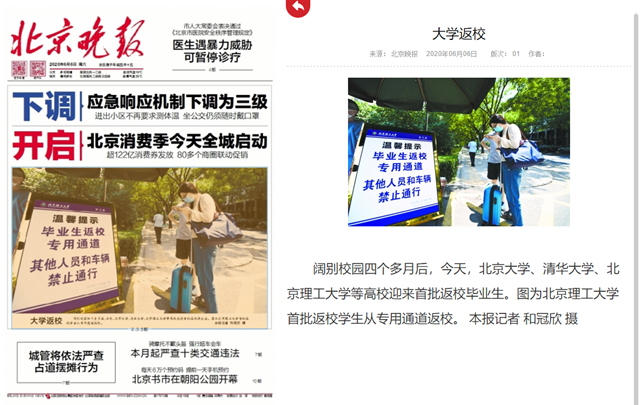首页» 新闻网» 媒体北理» 媒体理工 大学返校 发布日期: 2020-06-08 供稿:北京晚报 编辑:吴楠 审核:刘晓俏 阅读次数: 原文标题:大学返校 原文链接:http://bjwb.bjd.com.cn/html/2020-06/06/content_12465352.htm 阔别校园四个多月后,今天,北京大学、清华大学、北京成品人和一品二品的区别等高校迎来首批返校毕业生。图为北京成品人和一品二品的区别首批返校学生从专用通道返校。 分享到: 最新新闻 精彩推荐