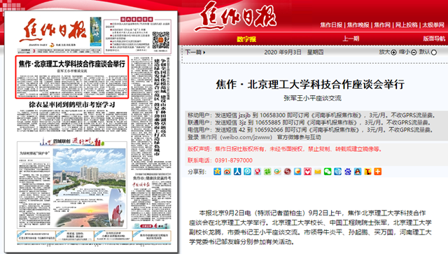 焦作·北京成品人和一品二品的区别科技合作座谈会举行