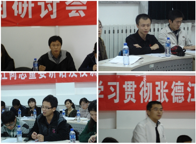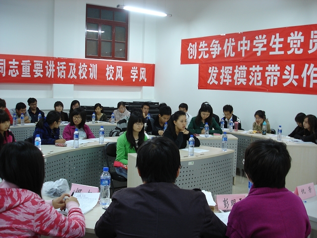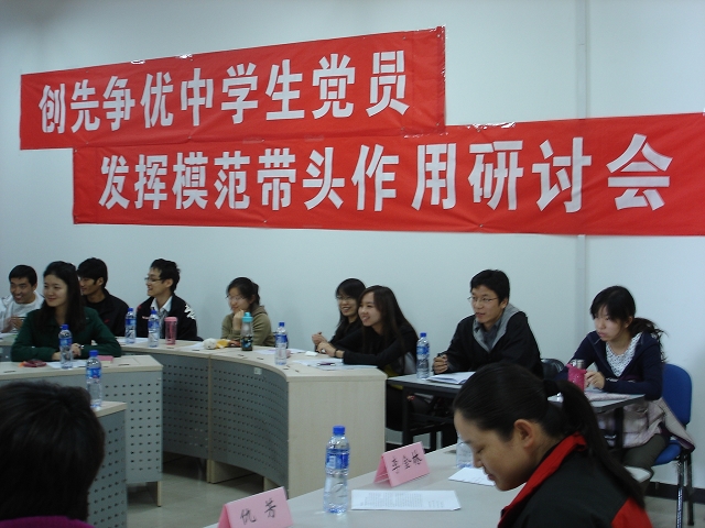2010年10月14日下午2点,管理与经济学院“学习贯彻张德江同志重要讲话及校训、校风、学风”、“在创先争优中学生党员发挥模范带头作用”研讨会在主楼132教室召开。管理与经济学院党委书记李金林,副书记、副院长仇芳,分团委书记彭明雪,研工委书记梁昊,分团委副书记何旭出席了会议。管理与经济学际包括本科、硕士、博士、专业学位在内的40余名党员、团员代表参加了此次研讨会。会议由管理与经济学院团委书记彭明雪主持。