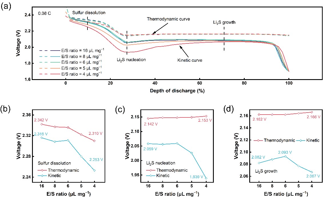 图1. 贫液锂硫电池正极热力学和动力学分析。