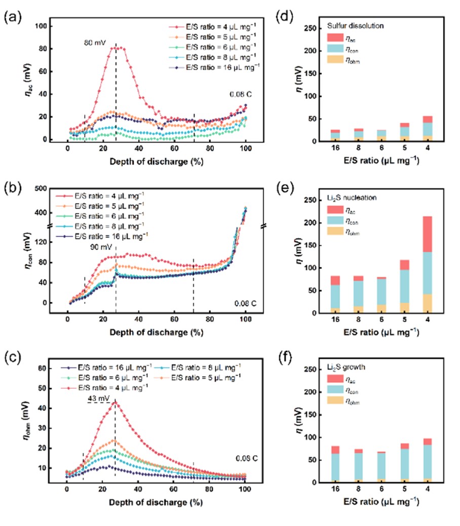 图3. 不同E/S ratio下反应动力学极化解耦结果。