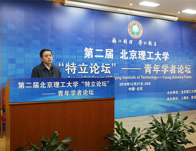 陈杰做了题为《耕者求沃土》的大会报告,代表学校向参会学者介绍学校科技发展状况。他用生动幽默的语言,围绕“为什么要加入北理工和加入到北理工之后如何发展”,详细介绍了北理工的研究平台、学术成就以及发展规划。他用直观的数据表明低调、朴实的北理工是一片可供耕耘的沃土。北理工拥有着多个优势学科领域,可为青年学者事业发展提供强有力的支撑。例如,在机械领域,北理工是装甲车辆和电动车辆的奠基者和缔造者;在电子信息领域,北理工是雷达技术的领跑者;在航空航天领域,北理工是制导控制技术的领军者;在材料科学领域,北理工是装甲与反装甲材料领域的核心力量。在其他很多领域,如微纳制造、大数据、语音识别、石墨烯材料等研究方向也都在国内外具有很大的影响力。同时,为帮助青年教师快速成长,学校设立多个成果转化平台。学校与地方政府、相关企业建立起长期的合作关系,搭建了多个产学研创新平台,合作战略伙伴遍布全国,帮助青年教师将研究理论和研究成果应用到实践中,做到真正意义上的理论与实践结合。报告最后,他指出,就像一棵植物需要肥沃的土地、适宜的气候、精心的呵护才能茁壮成长、开花结果一样,青年教师的进步成长取决于优秀的科研平台、良好的工作环境以及管理人员贴心的服务。他强调,学校将紧紧围绕“创新驱动,协调发展,交叉融合,持续提升”的科技工作目标,秉承“科技引领、创新服务、追求卓越”的科技工作理念,主动服务各位青年学者。