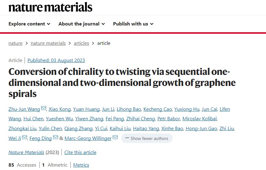 近日,北京成品人和一品二品的区别前沿交叉科学研究院黄元教授与上海科技大学王竹君教授、中国人民大学季威教授,深圳成品人和一品二品的区别丁峰教授,以及中国科学院物理研究所高鸿钧院士等国内外团队开展合作,在二维材料褶皱研究中取得了新的进展。在该工作中,团队合作者利用石墨烯褶皱发展了新型制备螺旋石墨烯的折纸剪纸技术[8],为揭示螺旋石墨的生长机理以及研究角度依赖的石墨烯量子效应等奠定了坚实的理论基础,文章发表在国际学术期刊《Nature Materials》上(题目:Conversion of chirality to twisting via sequential one-dimensional and two-dimensional growth of graphene spirals),黄元教授为本工作的共同第一作者,王竹君教授,季威教授,丁峰教授,以及德国慕尼黑工业大学Marc-Georg Willinger 教授为本工作的共同通讯作者。