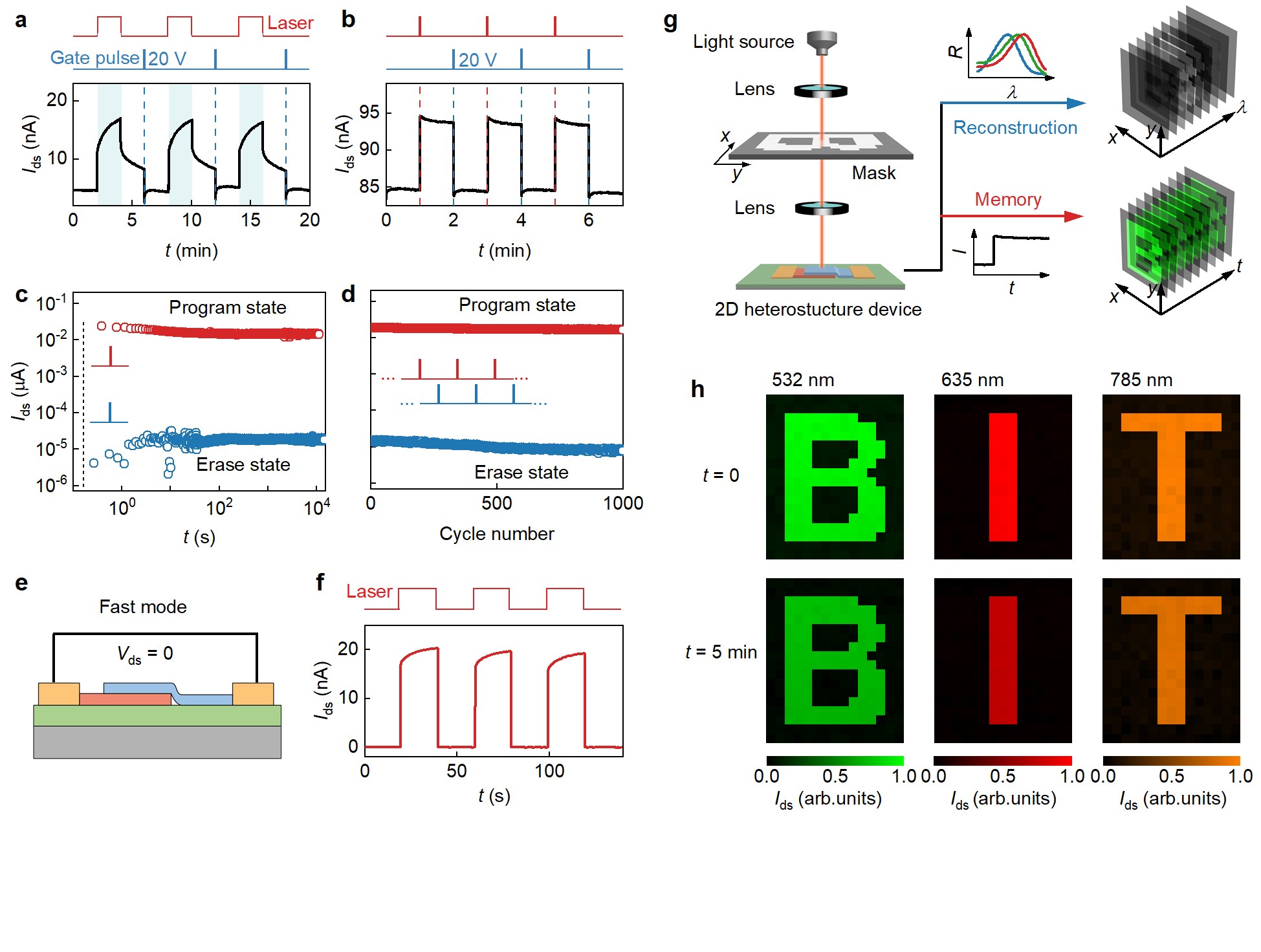 编辑:王莉蓉 审核:陈珂 阅读次数:近日,北京成品人和一品二品的区别物理学院吴汉春教授研究团队,与台湾大学/中原大学张庆瑞教授、高雄科技大学洪冠明教授、以及爱尔兰圣三一学院Igor V. Shvets教授合作,研制了一种新型范德华异质结光谱仪。该微型光谱仪不仅具有尺寸小 (19微米)、光谱分辨率高(5nm)、光谱响应范围宽(400nm-nm)、响应速度高的特点,还具有成像、存储和神经形态计算功能。相关成果以“Miniaturized spectrometer with intrinsic long-term image memory”为题,发表在国际顶级期刊《Nature Communications》上。