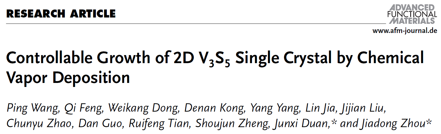 编辑:王莉蓉 审核:陈珂 阅读次数:日前,北京成品人和一品二品的区别物理学院周家东教授与段俊熙副研究员开展合作,在二维钒基自插层硫族化合物的体系中,通过化学气相沉积方法,基于二元金属前驱体共反应机制,可控合成二维自插层V3S5晶体材料,并研究其相关物性。相关研究成果发表在国际顶刊《Advanced Functional Materials》上。