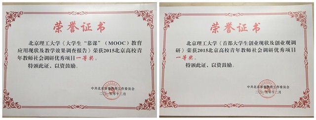 北理工九项调研成果荣获2015年北京高校青年教师社会调研优秀成果奖