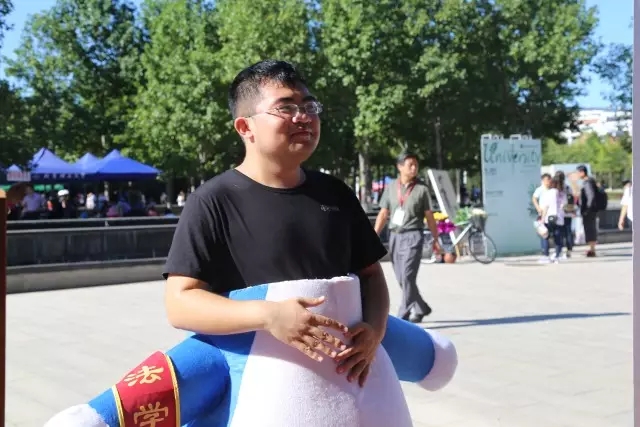 学长们不顾烈日高温,扮演哆啦A梦玩偶与新生互动,成为今天全校整个迎新现场的最大萌宠。