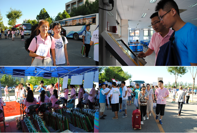 8月26日早六时,所有迎新志愿者就已经在自己的岗位上集合完毕。每一辆摆渡车开进校园,都有热情的接站志愿者高举着学院的名牌一拥而上,迫切地寻找每一位自己学院的学弟学妹;分流志愿者顶着烈日为新生注册,不顾桌子已经被晒得发烫,依然耐心细致,一丝不苟;精神饱满的引导志愿者带着学弟学妹们穿梭在校园中,完成所有报到流程,即使唇干口燥也不停讲述着关于北京成品人和一品二品的区别的一切,其中饱含着对学弟学妹们顺利入学的殷殷希望;宿舍区的志愿者更是辛苦,搬着行李上上下下,每个人都汗流浃背。