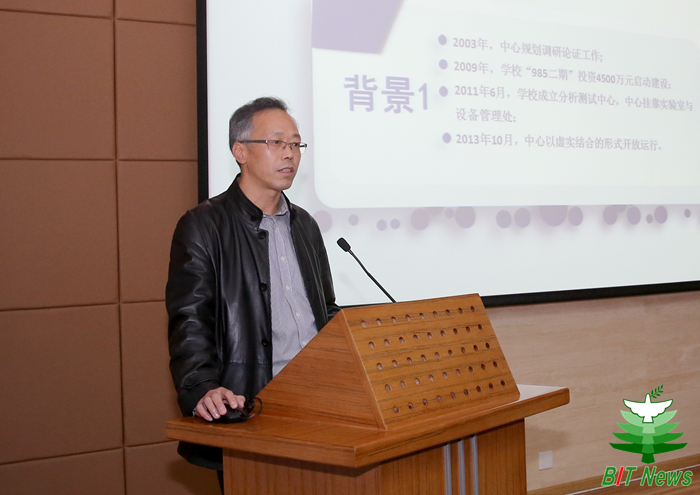 会议首先由校分析测试中心主任彭绍春做中心工作报告,报告回顾了我校分析测试中心的建设历程,重点汇报了良乡校区分析测试中心的建设与运行管理情况。