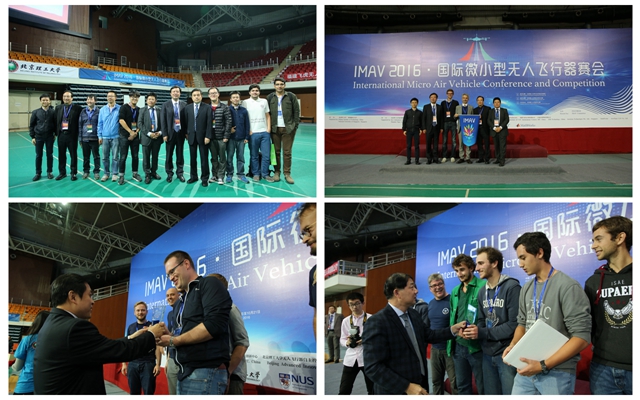 10月21日,IMAV'2016圆满完成了所有的赛会项目。校长胡海岩院士出席闭幕式,为获得室外比赛一等奖的德国AKAMAV队颁发奖状和证书,IMAV委员会主席Guido de Croon教授为获得室内比赛一等奖的伊朗KN2C队颁发奖状和证书,中国科协书记处书记项昌乐教授为获得室外比赛二等奖的法国ISAE队颁发奖状和证书,IMAV委员、法国Jean-Marc Moschtta教授为获得室内比赛二等奖的墨西哥Quetzalcuauhtli队颁发奖状和证书。大会协主席Ben M.Chen教授和田刚印先生,分别为获得室外和室内三等奖的韩国SCV队和荷兰MAVLAB 队颁发奖状和证书。