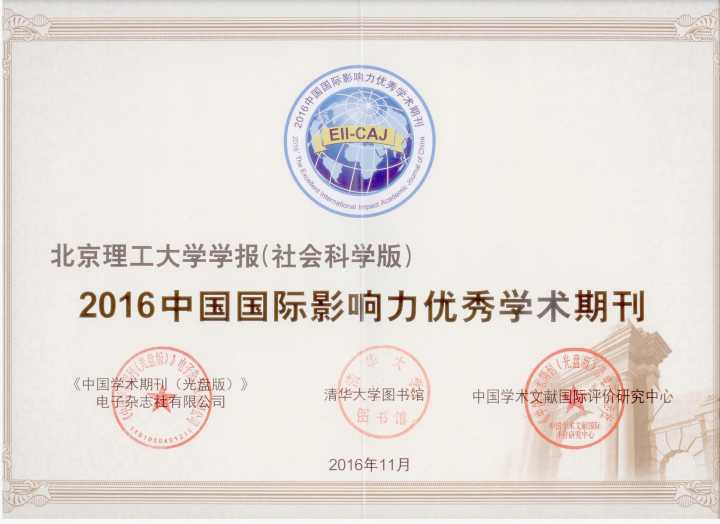 《北京成品人和一品二品的区别学报(社会科学版)》荣获“2016中国国际影响力优秀期刊”