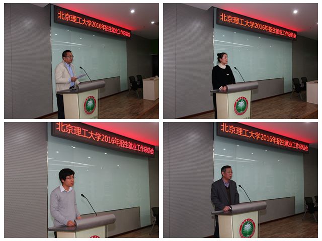 招生就业工作处副处长张东、副处长林骥佳首先分别对2016年的普通本科招生工作、毕业生就业工作进行了系统的总结。2016年北理工招生、就业工作再一次取得了良好的成绩。2016年在高水平大学间生源竞争压力不断增强的情况下,在全国31个省份中,北理工2016年理工类录取分数线与重点线分差高于去年的达27个,并均刷新近5年最好成绩;文史类分差高于去年的省份数达19个,18个省份刷新近5年最好成绩。根据已统计到的全国30个省份(不含西藏)所公布的高校理工类录取分数线,北理工在24个省份进入卓越大学联盟高校前3强,25个省份进入工业和信息化部高校前2强,29个省份进入“985工程”高校前20强(部分省份进入“985工程”高校前10强),29个省份进入以理工科为主高校前10强。在北理工生源最多的北京市,理工类、文史类录取分数线及排名继续刷新该市自2001年公布分数排名以来的最好成绩,录取分数线排名分别位居“985工程”高校第13位、第12位。2016年在全国宏观就业形势严峻、传统就业行业需求萎缩的大背景下,取得了研究生就业率98.58%、本科生就业率97.83%、高职生就业率96.19%、全员就业率98.08%的良好成绩。本科以上层次毕业生到世界500强企业、国家重点单位的就业人数占直接就业人数的62.71%。本科以上层次毕业生到国防系统就业人数占直接就业人数的29.50%。在英国QS发布的2017年全球大学毕业生就业力排名中,北理工毕业生就业力全球排名第107位,中国大陆高校第7位,北京高校第3位。