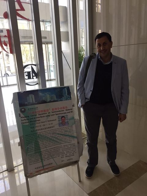 编辑:赵汗青 审核:刘艳 阅读次数:2017年3月27日,阿卜杜拉国王科技大学Omar F. Mohammed教授应邀到北理工材料学院做学术报告,于上午10:00在研究生楼五层多媒体会议室面向全校师生做了题为“Mapping Carrier Dynamics on Semiconductor Material Surfaces and at Interfaces using Laser Spectroscopy and 4D Electron Microscopy”的学术报告。该报告会系北理工材料学院“21世纪学科前沿” 系列学术交流活动之一。会议由材料学院钟海政教授主持,材料学院420余学生(包括本科生、硕士和博士研究生)聆听了Omar F. Mohammed教授的精彩报告。