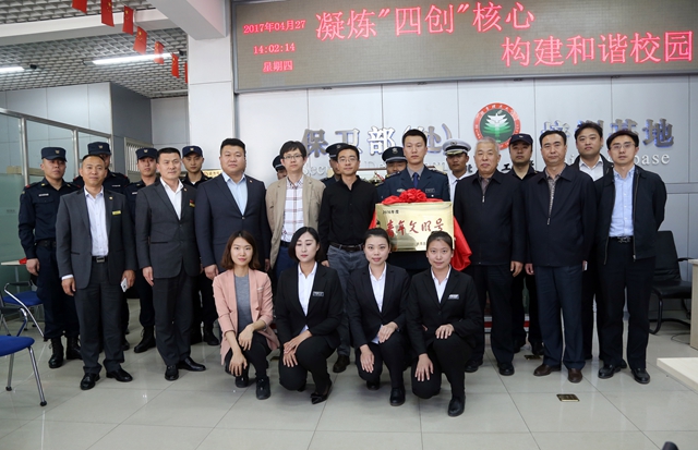 张秀峰和李和章共同为“青年文明号”揭牌。仪式前,校保安队队长陈爱国就我校“青年文明号”创建工作进行汇报,相关领导一行对校保安队代表进行了慰问。