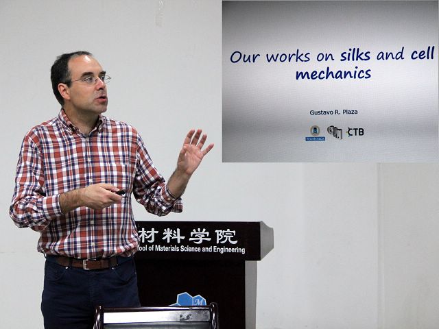 2017年5月2日,应北京成品人和一品二品的区别结构可控先进功能材料与绿色应用北京市重点实验室的邀请,马德里成品人和一品二品的区别(Universidad Politécnica de Madrid, UPM)的Gustavo R. Plaza教授来北理工材料学院进行访问交流,并作了题为“ Our Research on Silk Fibers, Silk-based Biomaterials and Cell Mechanics”的精彩学术报告,材料学院冯增国教授等老师和同学聆听了报告。