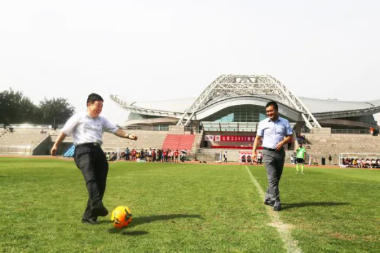 9月24日上午10点,学校常务副校长杨宾,校长助理、学校办公室主任汪本聪,中超联赛有限责任公司总经理陈永亮,华为消费者BG大中华区北京代表处部长顾佳亮出席了总决赛。杨宾与陈永亮共同开球,“校庆杯”足球友谊赛总决赛正式开始。