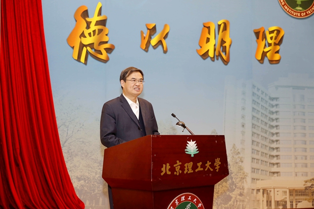 北理工初创时期的老院长徐特立先生,在校工作期间培养了一批伟大的共产主义战士;徐特立先生的继承者们,培养了以国家最高科技奖得主王小谟院士为代表的一批伟大的科学家;历史的接力棒交到我们这代北理人手中,我们的使命,就是要探索中国特色、北理风格的世界一流大学的人才培养之路,努力把在座的各位同学,培养成为中国特色社会主义事业的合格建设者和可靠接班人,指引你们获得“高远的理想”“精深的学术”“强健的体魄”和“恬美的心境”,帮助你们成长成才,为国家民族乃至全人类做出伟大的贡献。