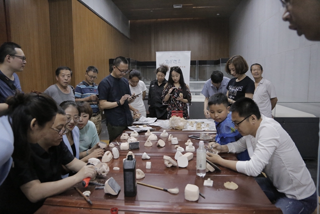 开幕式上还举行了项目图书《 瓷印辉光——当代陶瓷印创作生态研究展·当代陶瓷印艺术作品集》的新书发布仪式,王东声教授就画册编辑工作作了介绍,并宣布新书首发。另外,为了更好地服务社会,组委会特别安排了陶瓷印公益性现场体验单元,很多观众兴致勃勃地参与其中。