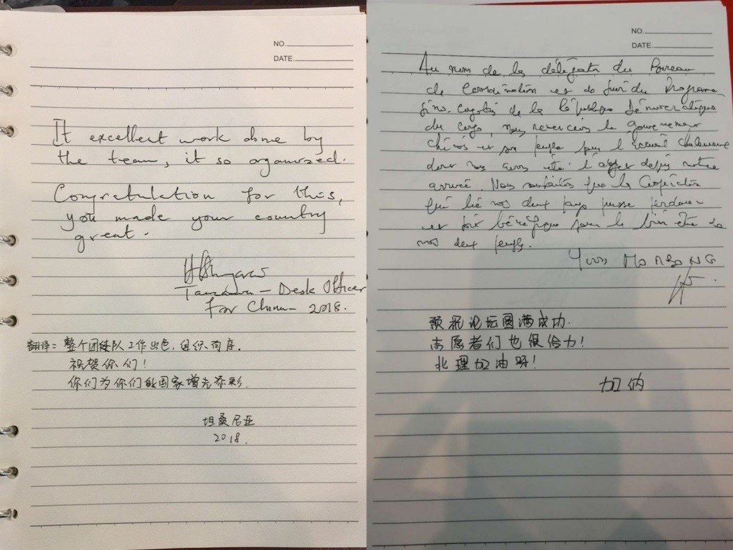“整个团队工作出色,组织有序。祝贺你们,你们为你们的国家增光添彩!”这是坦桑尼亚参会人员写在反馈本上的话语,对中非合作论坛北京峰会志愿者们的工作给予了充分肯定。