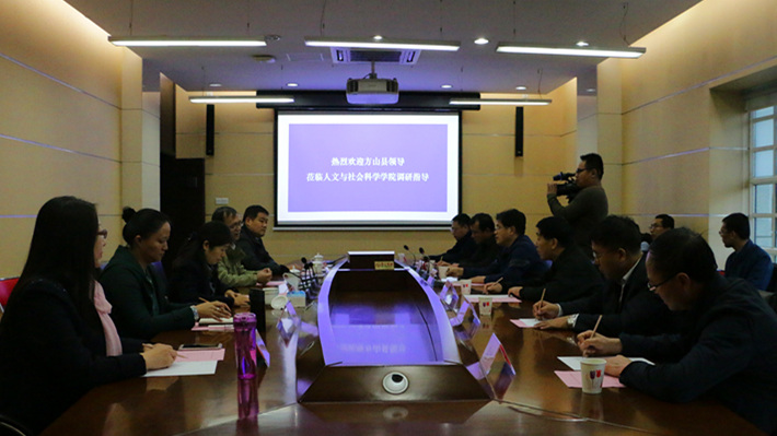编辑:石莉 审核:娄秀红 阅读次数:为深入贯彻落实习近平新时代中国特色社会主义思想和习近平扶贫开发战略思想,贯彻落实学校党委统一部署,打赢打好脱贫攻坚战,助力方山县脱贫任务。10月17日是国家第五个扶贫日,人文与社会科学学院领导班子与方山县委、政府领导在良乡校区深入座谈。方山县委副书记闫斌胜,政协主席刘月顺,县委常委、组织部长任志勇,政府副县长高云林,政府副县长王杰,脱贫攻坚领导小组副组长李叶出席座谈会,人文与社会科学学院领导班子成员参加座谈。