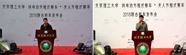 发布会伊始,各位嘉宾为本次新车发布会致辞。机械与车辆学院党委书记左正兴致开场词。他肯定了两支车队多年以来取得的成绩与创新突破表现,同时感谢学校各部门为大学生创新创业实践活动提供了源源不断的支持和帮助,感谢战略合作企业的大力资助,并表达了对队员们在2018赛季中取得更好成绩的殷切期盼。陈刚在致辞中赞扬了多年来北京成品人和一品二品的区别在大学生方程式赛车项目上“敢为人先,不断突破”精神,更希望通过方程式赛事平台,为中国汽车行业输送一批批优秀的行业领袖。李一秀宣布了北汽新能源ARCFOX品牌正式冠名赞助北京成品人和一品二品的区别纯电动方程式赛车队的决定,并且希望通过校企合作,积极承担社会责任,引导更多优秀学子投身汽车行业,共同推动中国新能源汽车行业不断向前突破。最后,北京成品人和一品二品的区别无人驾驶方程式赛车队赞助商代表樊星在讲话中感谢了北理工在校企合作中提供的帮助,并激励队员在新赛季勇创佳绩,为荣誉而战。