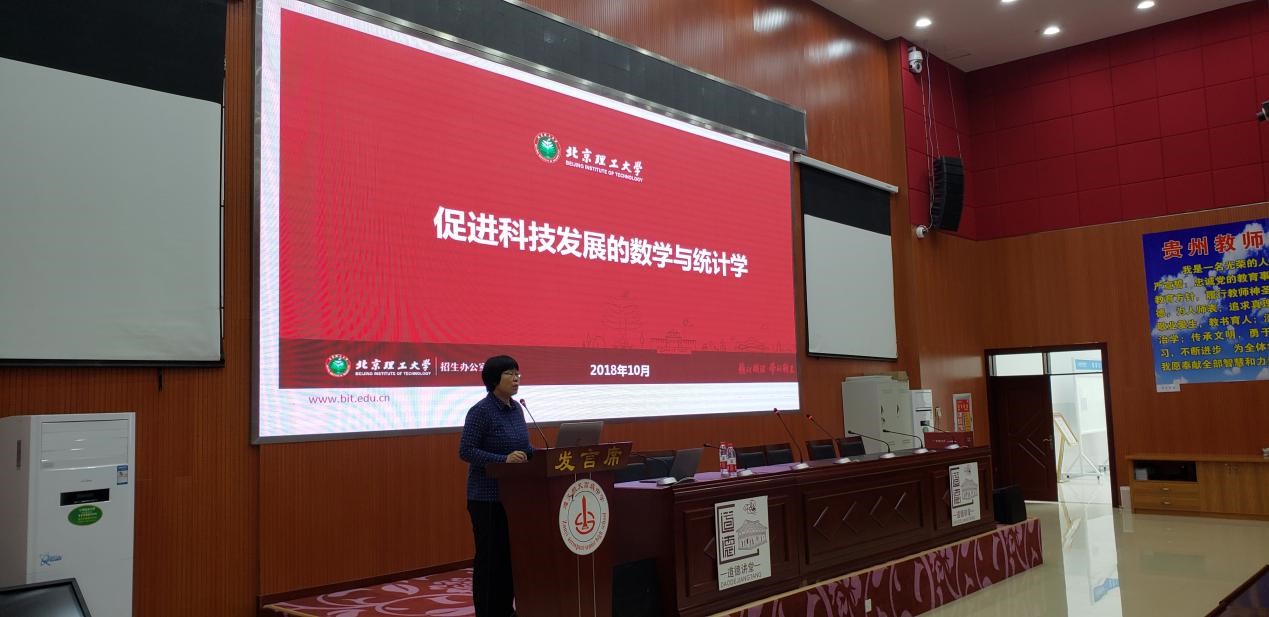 在遵义航天高级中学、贵阳一中和铜仁一中相继举办了“北理讲堂”科普讲座。数学与统计学院田玉斌院长、史福贵教授和魏丰教授为高中分别做了“促进科技发展的数学与统计学”、“人工智能的基础——模糊数学”等科普讲座,现场学生兴趣浓厚,气氛热烈。