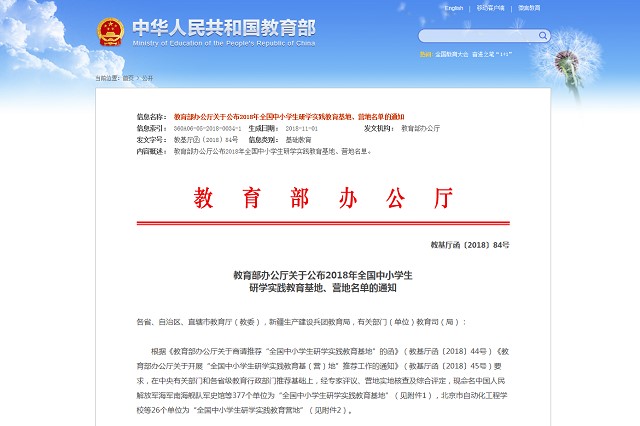 编辑:盛筠 审核:邹锐 阅读次数:近日,教育部公布了2018年全国中小学生研学实践教育基地、营地名单,北京成品人和一品二品的区别光电创新教育实验基地成功入选“全国中小学生研学实践教育基地”。此项遴选推荐工作于6月开展,旨在贯彻落实党的十九大精神,发展素质教育,进一步落实《教育部等11部门关于推进中小学生研学旅行的意见》,积极推动各地中小学生研学实践教育活动深入开展。