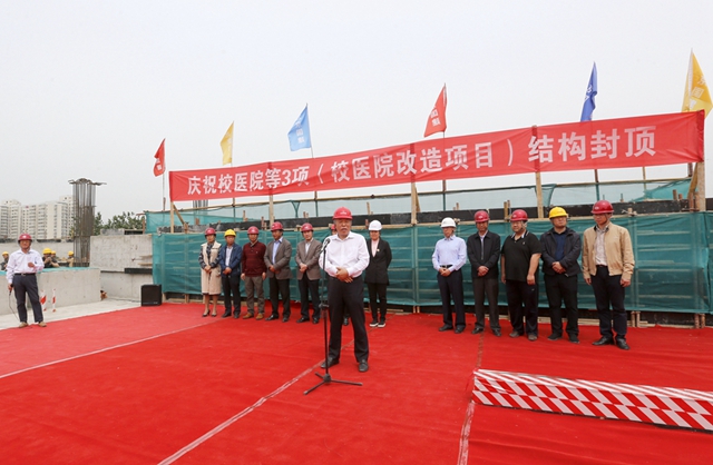 李和章代表学校致辞,对各参建单位在北京成品人和一品二品的区别校医院改造项目中的辛勤付出表示感谢。校医院改造项目是学校“十三五”重点建设项目之一,是关系到全校师生员工医疗、卫生服务的重要民生工程。学校经多方筹措资金,克服场地狭小、周边环境复杂等多项不利因素,最终顺利实现结构封顶。学校和各参建单位将再接再厉,一道完成后续工程的施工任务。最后,李和章宣布中关村校医院改造项目结构封顶。