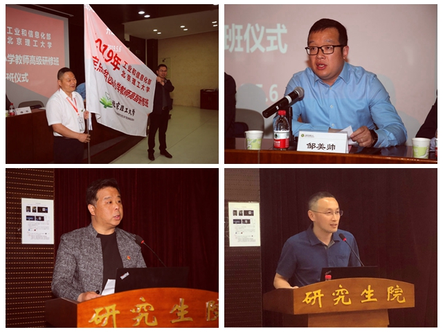 开班仪式上,工信部直属机关党委组织宣传部副部长付武强为研修班授予班旗,学校党政办公室副主任兼对外合作办公室主任邹美帅表达了对研修学员的热忱欢迎。他表示,北理工将深入贯彻落实党中央、国务院和工信部各项扶贫工作部署,充分发挥北理工教育优势资源,做好教育扶贫工作;理工附中党委副书记潘军表示理工附中附小会用最大力量支持教育扶贫事业;学员代表梁莉莉、秦谈顺表达了对研修学习的期待与向往。结业仪式上,教师发展中心副主任侯爱军以“感谢、感动、祝福、欢迎”四个关键词作总结发言,并表示中心将继续在工信部和学校党委的统一领导下,协同各部门持续为定点扶贫教育事业贡献力量;班长汤海老师分享了一周研修的收获与感悟,希望扶贫教育活动能够一直开展下去,为奋战在贫困区县的教育工作者们创造学习成长的一流平台。