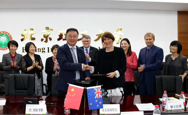 王晓锋和Dixon分别代表北理工和奥克兰大学续签校际合作协议。