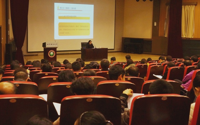 北京市委教育工委组织处处长李丽辉作了“北京高校基层党建工作创新与实践”专题辅导报告,介绍了北京高校党建工作的基本情况,讲解了基层党建工作创新的主要做法,提出了下一步工作的重点。她讲到,北京高校党建工作具有良好的基础,受到中央的高度重视。党的基层组织是党全部工作和战斗力的基础,在当今高校外部、内部环境发生深刻变化的情况下,要从创新工作理念、坚持理论武装、健全工作机制、加强党内民主建设、推进工作创新和建立长效机制等六个方面进一步加强高校基层党建工作。要按照为全面深化高等教育改革提供坚强保障的总要求,把加强思想理论建设、党的建设制度改革、建设服务型基层党组织、增强党员队伍先进性纯洁性等作为高校党建工作的重要任务。