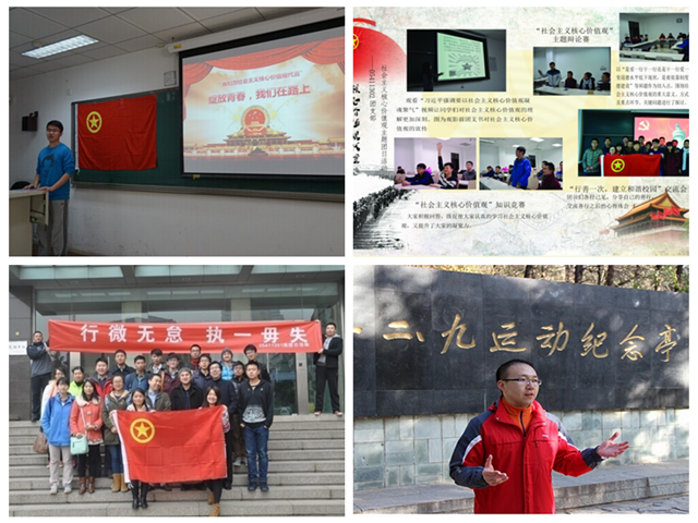 。。值得一提的是,共青团组织始终将青年学生理论学习放在重要的位置,在宣传贯彻习近平总书记系列重要讲话精神“四进四信”活动的号召下,依托理论学习社团开展以“学习和践行社会主义核心价值观”为主题的理论学习论坛,进一步促进青年学生“比理想、比学习、比成才”。同时在全校范围内开展“青年马克思主义者课堂”课程设计大赛,选拔成立“学生党课讲师团”,打造“青马讲堂”系列精品党课,协助各学院做好院级党课培训工作,取得良好成效。同时,注重做好“优秀学生理论社团”创建和培育活动,将学生理论学习型社团作为青年学生思想引领的有力抓手。